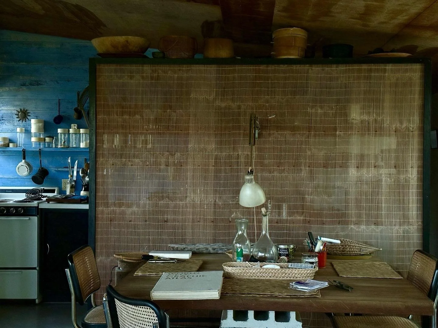 - The blue kitchen wall: In a photo in a 1950 LIFE magazine the wall was unpainted pine. It is now peeling blue paint which shows possibly black or dark grey underneath. It may show a different blue over-painted or it may be faded in places. All paint needs to be tested for lead. Several participants thought it should be preserved as-is and encapsulated in a way that preserves the layers of paint. Others thought it should be re-painted the most recent blue. The wall is over the food prep area and needs to be safe. How to get a clear coat that doesn’t alter the color?